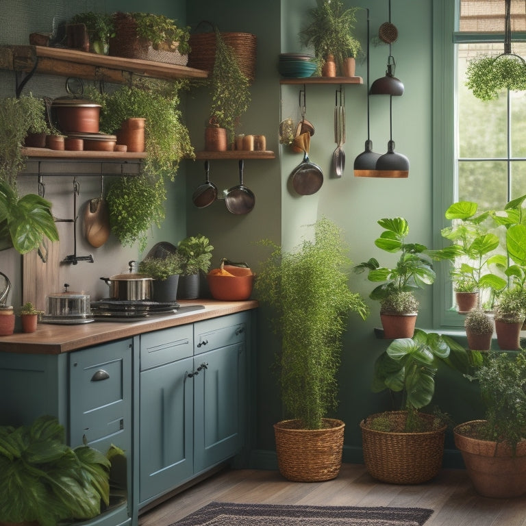 - Maximize vertical storage by installing compact hanging pot racks on walls and ceilings to free up counter space in tiny homes.