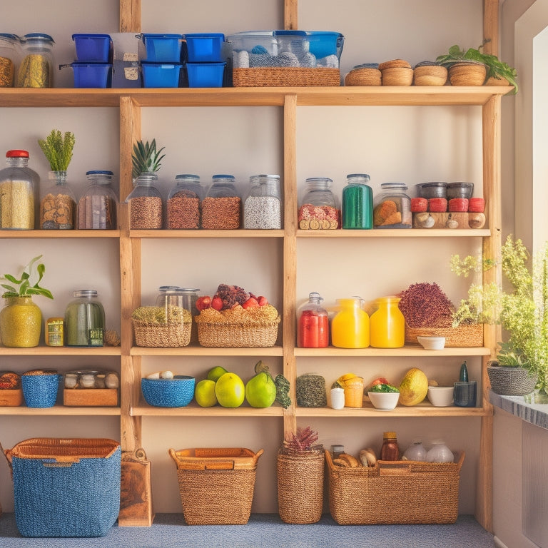 Don't overlook stackable bins for pantry items; they make the most of corner shelves, keeping everything neat and accessible.