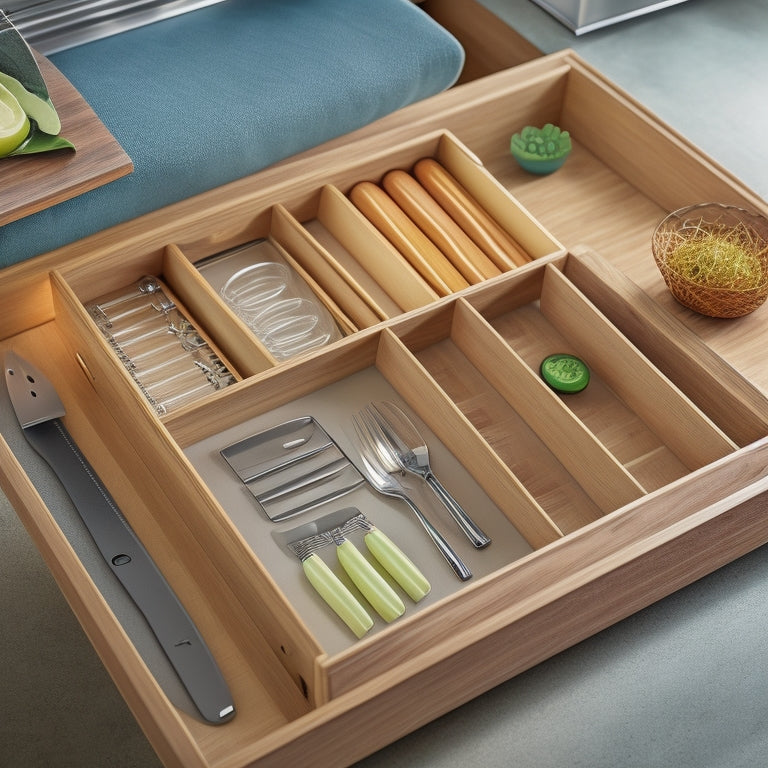 When you organize your utensils with unique compartments, you'll uncover a whole new level of space efficiency.