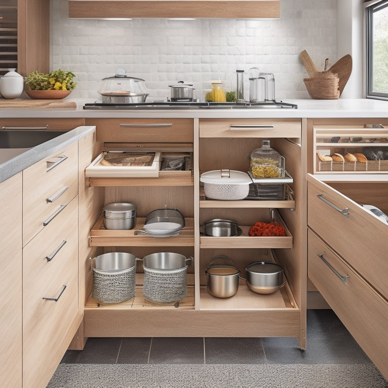 - Customizable drawer depths accommodate various items, from bulky pots to small utensils, maximizing storage efficiency.