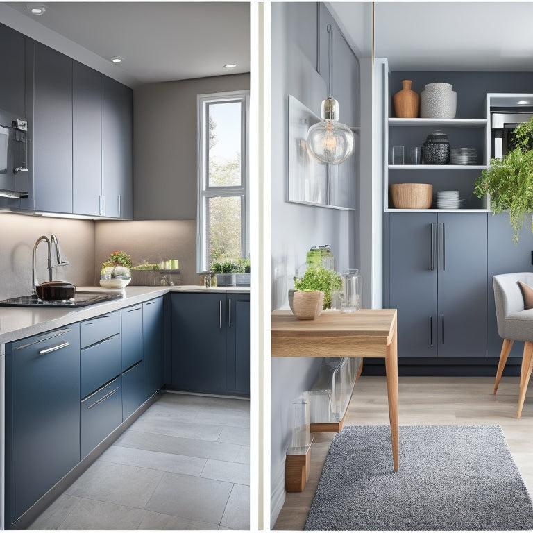 Imagine sleek, compact tables that extend when you have guests, converting your cooking area into a dining haven. These clever designs not only save space but also enhance furniture versatility, allowing you to adapt to your needs effortlessly.