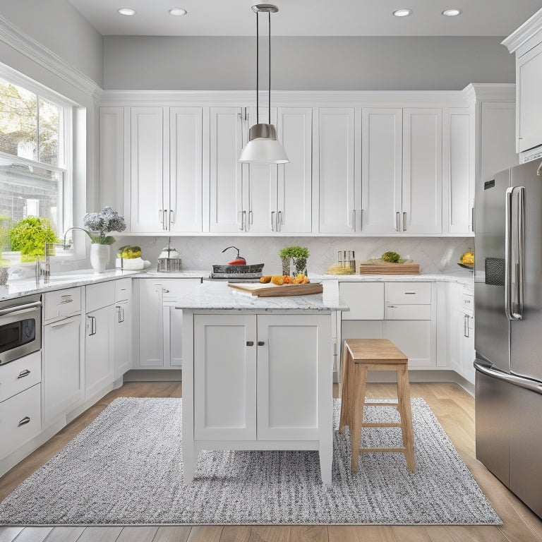 You're about to reveal the secret to a kitchen that doesn't just look great, but actually works for you. Start by evaluating your kitchen essentials, keeping only gadgets that are functional and frequently used. Assign a home for each item, categorizing similar things together and labeling containers for easy identification. Optimize your workflow by placing essential tools and ingredients nearby, and implement efficient storage solutions. Make the most of your space by repurposing storage areas and using stackable containers. With these steps, you'll be cooking up a storm in no time - and there's even more to discover to take your kitchen to the next level.