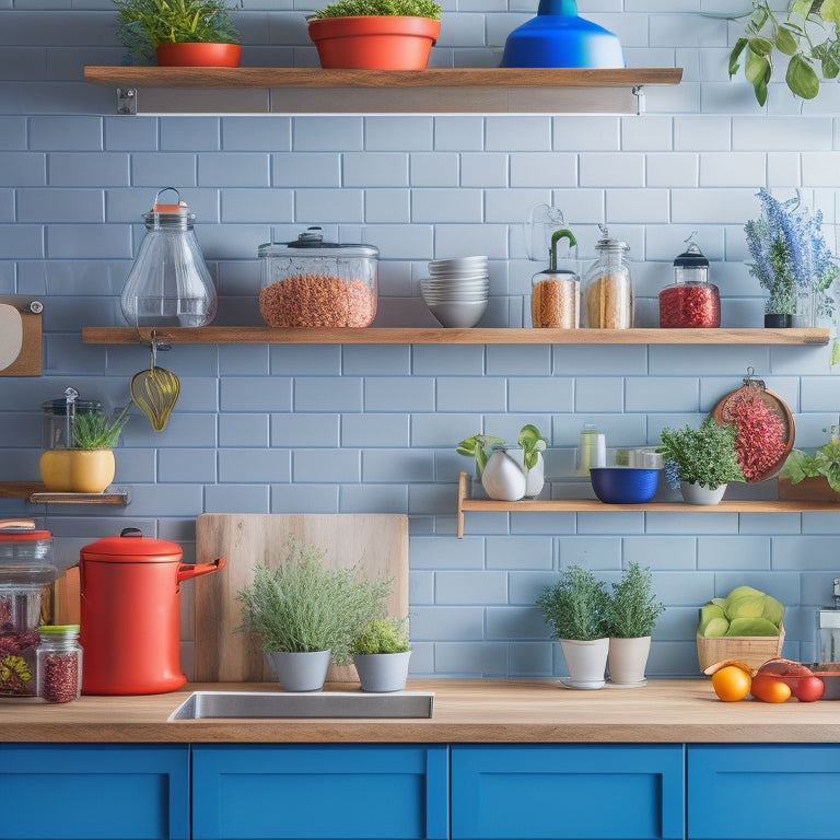 Imagine changing empty walls into functional art with shelves installation that showcases your favorite cookbooks, decorative jars, or lively plants. This approach gives you the freedom to personalize your kitchen while keeping essentials within arm's reach.