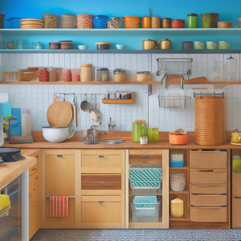 You're ready to tame the clutter and transform your kitchen into a serene cooking space. Start by categorizing small appliances into groups, then create a countertop map to make sure each one has a designated home. Next, maximize corner space with shelves and curved cabinetry, and organize countertops into zones for food prep, cooking, and storage. Utilize vertical storage options like wall shelves and ceiling hooks to free up space. Finally, simplify kitchen drawers with dividers and categorize utensils to prevent clutter buildup. By implementing these essential hacks, you'll be cooking up a storm in no time - and there's more to discover to take your kitchen to the next level.