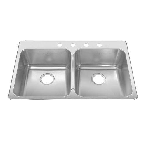 American Standard 15DB.332284.073 Prevoir 33.38-Inch Stainless Steel 4-Hole Topmount Double Bowl Kitchen Sink, Radiant Silk