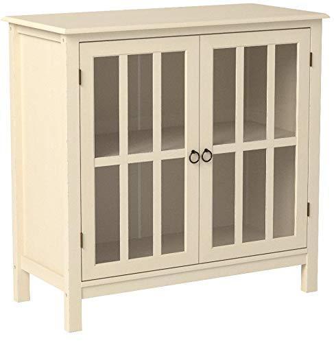 Target Marketing Systems Portland Collection Contemporary China Kitchen Cabinet with Glass Cabinet and One Shelf, Antique White